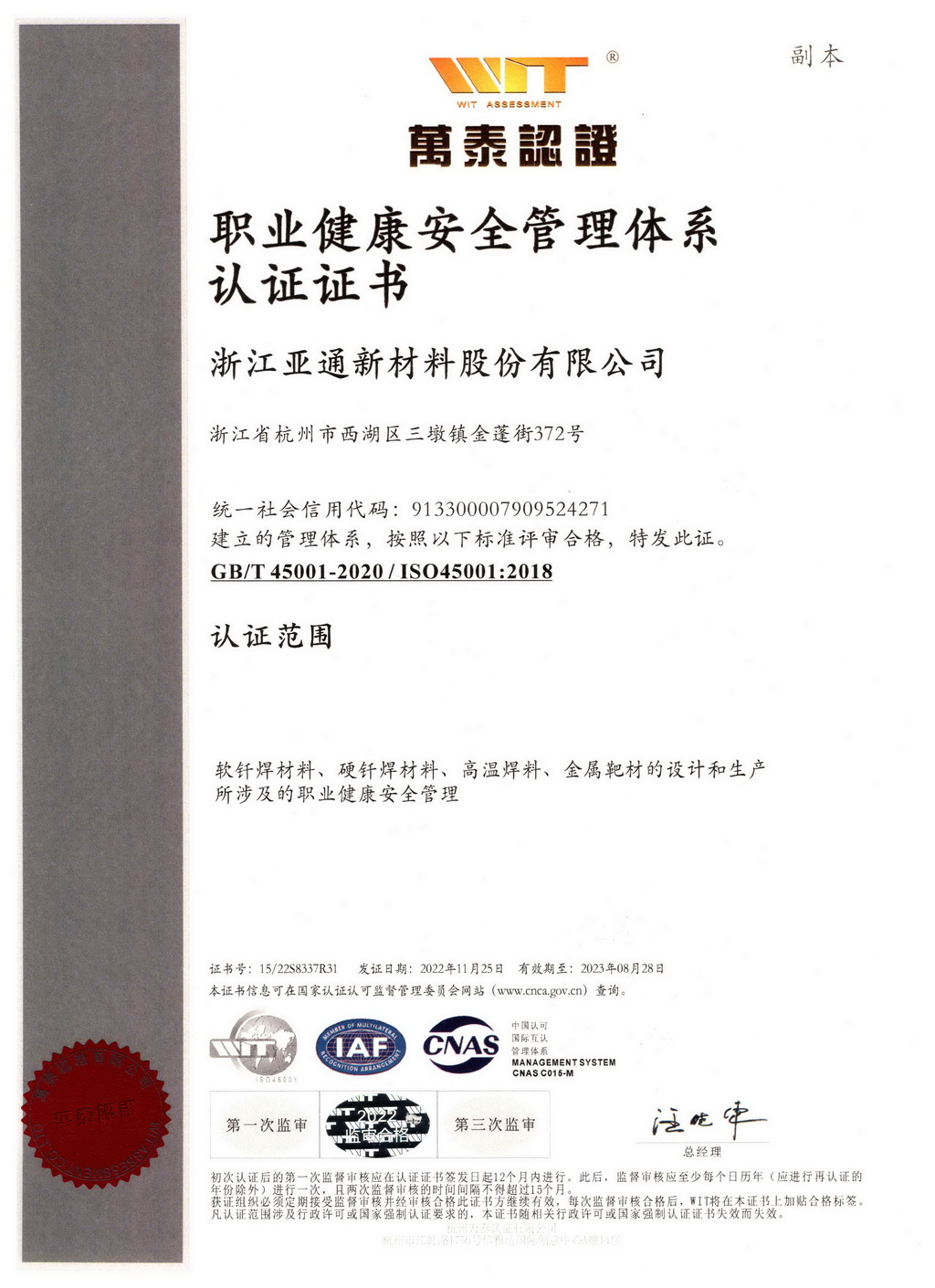浙江亞通新材料股份有限公司是世界500強企業杭鋼集團投資設立的高新技術企業,位于杭州市西湖區紫金港科技城,專業從事高中低溫全系列釬焊材料和金屬粉體的研發生產和銷售,是國內焊接材料行業的核心企業之一,多項國家標準的主要起草單位。公司在中國電子材料行業協會、國家標準化技術委員會、中國焊接協會等專業機構擔任領導職務,在行業內具有廣泛影響力。