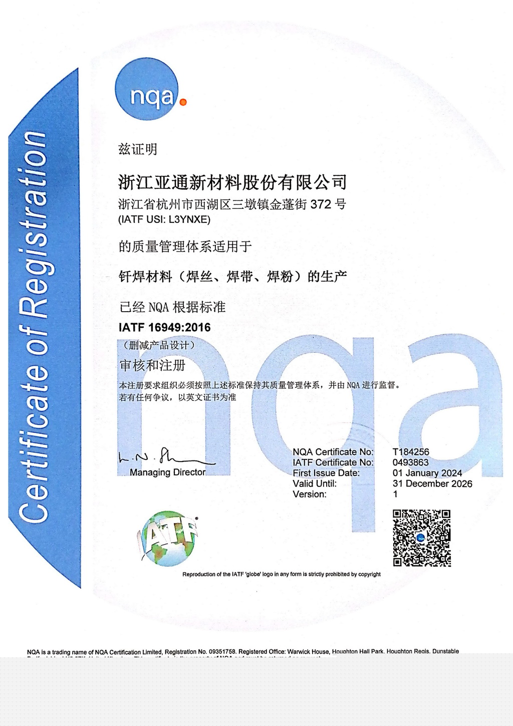 2025年榮獲國家級重點小巨人企業稱號;AgCuTi活性釬料躋身“浙江制造精品”權威榜單