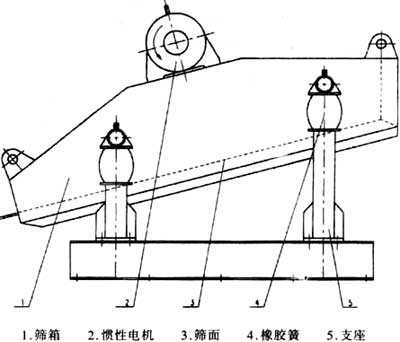 - 由于激振器布置在篩箱重心的上方,故篩箱兩端橢圓長(zhǎng)軸成下八字形,且給料端橢圓長(zhǎng)軸的上端朝向排料方向,有利于給到箱機(jī)上的物料迅速散開(kāi),而排料端橢圓長(zhǎng)軸上端逆著排料方向,減低物料運(yùn)動(dòng)速度,有利于難篩物料透篩,且圓弧狀的篩面又增大了篩機(jī)的有效面積,從而可以提高其處理能力。