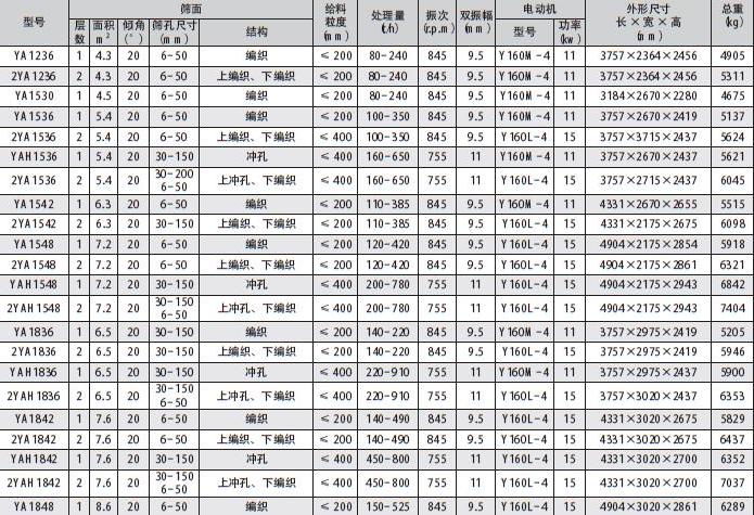 YA型圓振動篩用途與特點