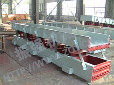 - SZF型慣性振動輸送機采用兩臺振動電機作為激振動源,運用自同步原理,兩臺振動電機反向轉動,使輸送機底部平衡架產生往復振動,經過主振簧與導向板簧的作用,帶動上部輸送槽振動,從而達到輸送物料的目的。該機是一種通用輸送機械,除用于水泥行業外,還可用于冶金、礦山、化工、電力等行業,是一種理想的新型輸送設備。